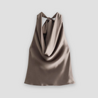 Turn heads effortlessly with the Elena Women’s Backless Halter Top Draped Satin Tank — where refined simplicity meets modern elegance.