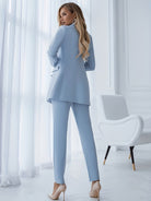 Sleek and Stylish Trousers: The straight-leg trousers complement the blazer perfectly, creating a seamless, elegant silhouette.