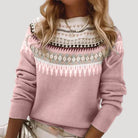 Complete your seasonal wardrobe with the Jenny women’s spring Fair Isle knit sweater – a balanced combination of classic design, comfort, and everyday versatility.