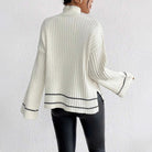 - Versatile Styling: With black stripes at the hem and sleeves, this sweater pairs well with jeans, skirts, or leggings for a laid-back yet stylish outfit.