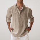 Timeless Button Design: The buttoned henley collar adds a sophisticated touch while keeping the look casual.